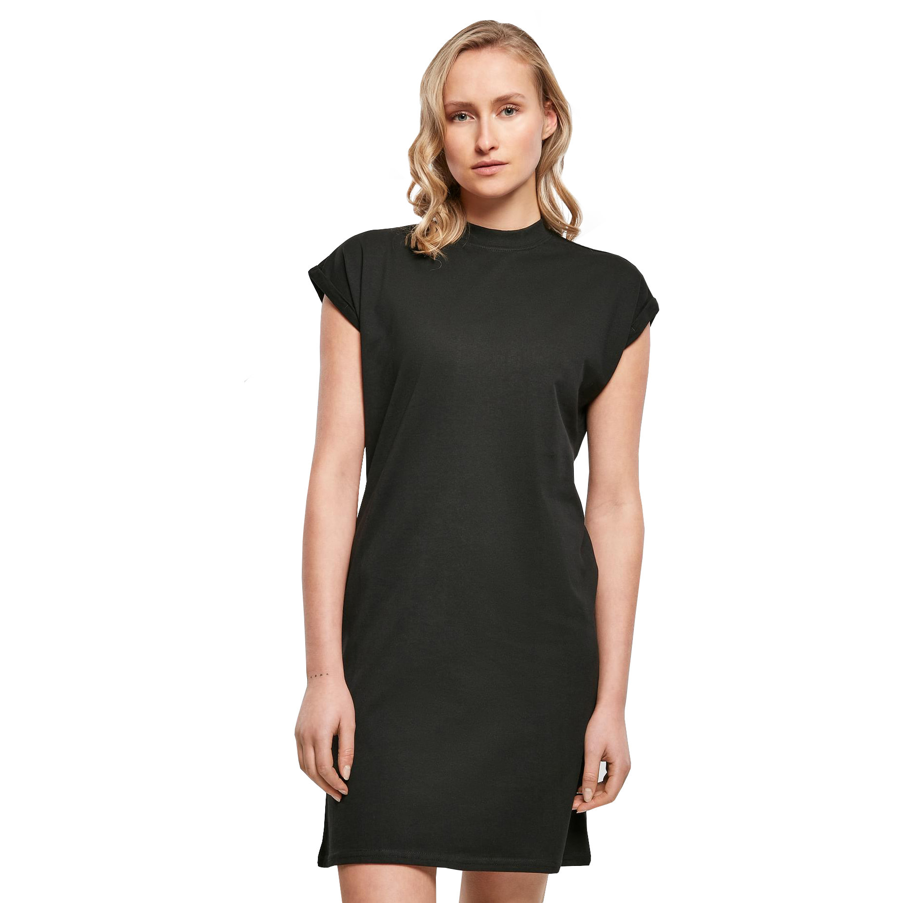 Stylové letní šaty tričkového střihu ze 100% bavlny vyšší gramáže. Šaty mají spadlé rukávy s ohrnutými lemy a mini stojáček u krku. Můžeš je nosit jen tak, nebo i jako delší tričko k legínám.